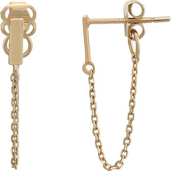 14K gold ensures an enduring shine to these gleaming bar stud and dangle chain earrings.