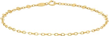Dainty discs and oval-shaped links catch the light on this layerable chain bracelet crafted from warm 14-karat yellow gold.