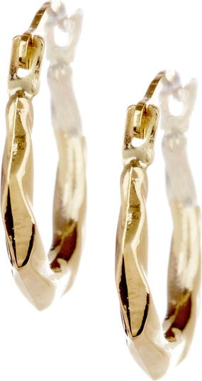 - 14K yellow gold small swirled and puffed hoop earrings - Snap down post closure - Approx. 0.33" length - Includes jewelry pouch - Imported Orders cannot be shipped to Canada, Puerto Rico, APO, FPO or P.O. Boxes.