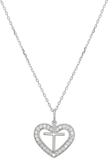 CZ Cross Heart Pendant Necklace