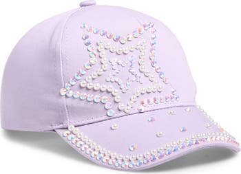 Sparkling stones and faux pearls create a whimsical star design on this woven baseball cap sized just right for your kiddo.