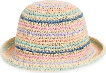 A striped straw bucket hat gives them a smart, sunny-day look they can wear to school, the park and the beach.
