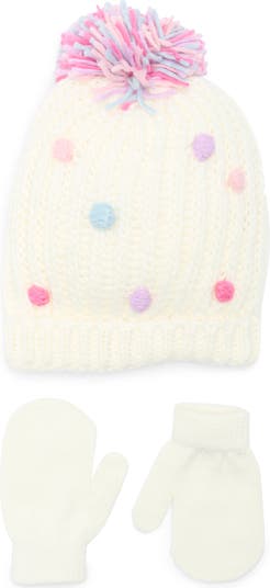 - Set includes: pompom hat and mittens