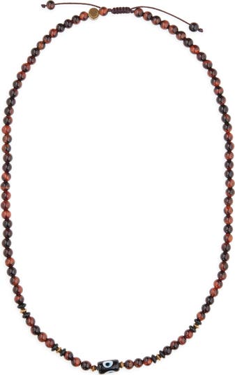 A striking mix of glass evil eye beads and natural gemstones seamlessly blends symbolic meaning with contemporary style in this layerable necklace.