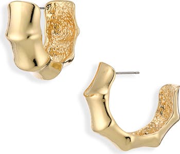 A texture inspired by bamboo trees lends depth and dimension to polished earrings that bring a fresh look to your hoops collection.