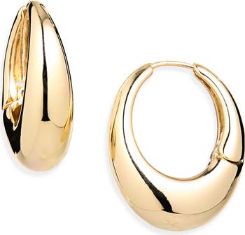 Shine all day in these bold hoop earrings fashioned in a lightly domed, tapered silhouette with a high-shine finish.