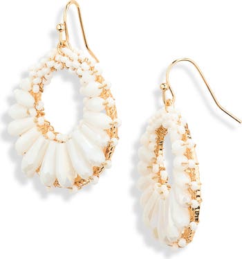 Evoke sunny-day charm with these open-circle drop earrings textured by monochromatic beads.