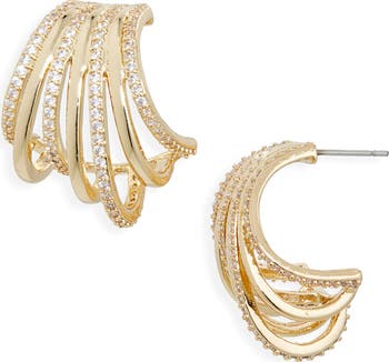 Pavé crystals trace the multi-strand silhouette of these glamorous half-hoop earrings.