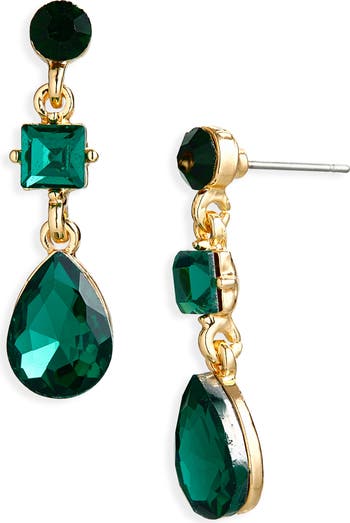 A trio of faceted crystal drops bring delightful shimmer and a pop of color to polished earrings that add instant glamour to your lobes.