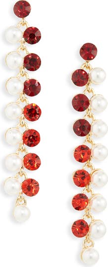 Rows of illuminating faux pearls and faceted crystals bring luxe shimmer and shine to linear-drop earrings that instantly brighten your lobes.