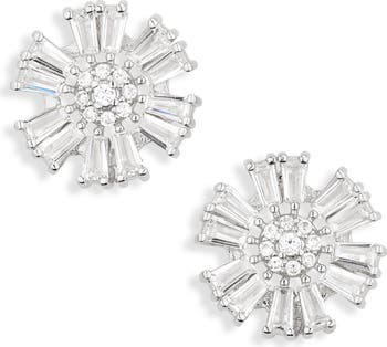 Baguette‑ and round‑cut crystals compose flower studs in these earrings perfect for your daytime or evening looks.