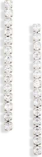 Bring some sparkle to your lobes for your evening ensembles with these linear drops showcasing round-cut crystals.