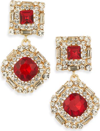 Crystal embellishments add dazzling sparkle to these statement-making earrings with a double-drop silhouette.