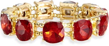 Glam up your look with this glossy metallic stretch bracelet illuminated by cushion-cut crystals.