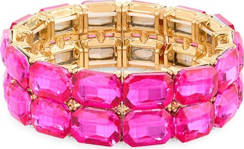Stacked crystals illuminate this bold double-row stretch bracelet that brings glamorous shine to your night-out looks.