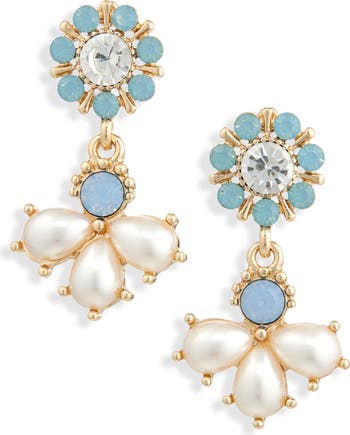 A floral cluster stud suspends a lustrous faux pearl drop in these earrings perfect for your evening ensembles.