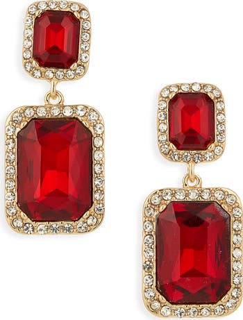 Pavé embellishments and vibrant crystals add dazzling sparkle to these statement-making earrings with a double-drop silhouette.