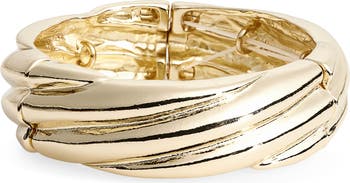 Grooved ridges catch the light on this textured metallic stretch bracelet that adds instant shine to your stack.