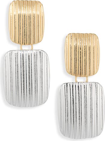 A ribbed finish adds contemporary appeal to these statement-making earrings with a double-drop silhouette.
