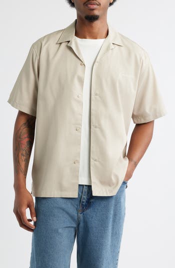 Breathable cotton and silky lyocell bring all-day comfort to a camp shirt made of soft twill and finished with workwear-inspired logo embroidery on the chest.
