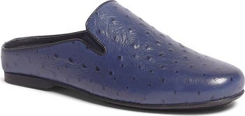 Ostrich-embossed leather adds a luxe appeal to this slip-on mule grounded by a grippy rubber sole.