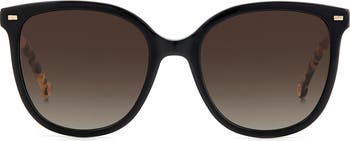 Subtle logo-etched temples distinguish glossy round-framed sunnies offering a standout look with full-coverage UV protection.