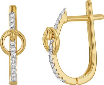 Diamond J-Huggie Hoop Earrings - 0.18ct.