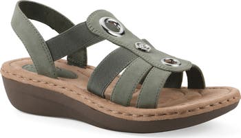 Breeze through sunny days in this grommet-studded sandal that provides easy-wear comfort with a cushy microfiber footbed and sensible wedge heel.