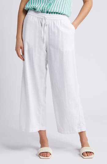 These lightweight linen-blend pants are cut with flowy wide legs and topped with a comfortable elastic waist.