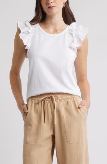 Frill at the shoulders perks up your everyday look in this versatile tank made from soft cotton jersey.
