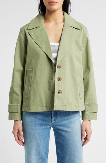 An inverted back pleat brings swingy movement to this boxy trench updated in a short fit and made from stretch cotton for comfort and easy flow.
