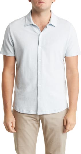 • Spring + Mercer Textured Short Sleeve Button-Up Sweater