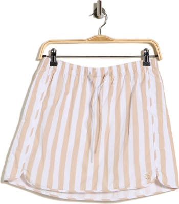 A boxer-inspired silhouette adds a laid-back feel to this crisp cotton miniskirt adorned in classic stripes.