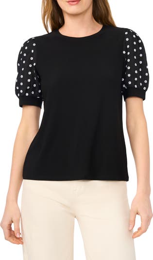 This crewneck top features embroidered puff sleeves for a touch of elevated detail on a classic silhouette.