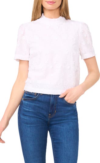 Textured tonal blooms sweeten this lightweight cotton blouse that's ideal for adding some charm to your work to weekend look.