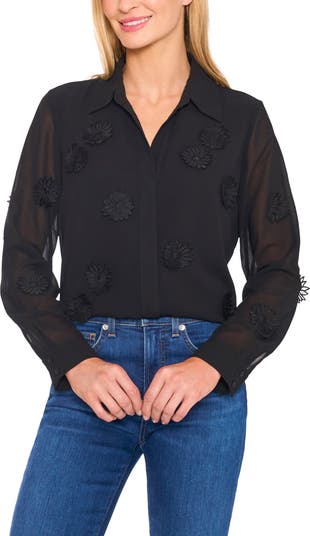 Textured, tonal blooms sweeten this lightweight georgette button-up that's an easy way to add some charm to your wardrobe.