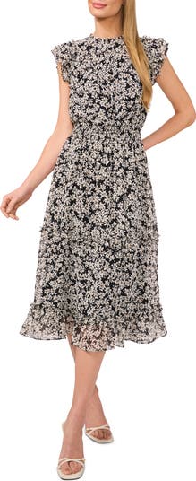 This enchanting frock ready for a daytime party is covered in a pretty blossom print with fluttering frills and a shaping smocked waist.