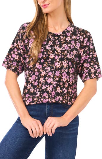 Abbreviated sleeves update this warm stretch-kissed cardigan covered in delightful blooms.