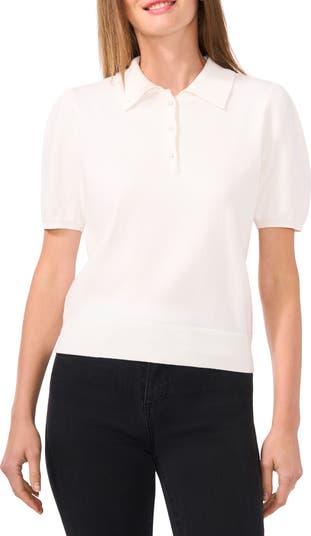 Imitation pearl buttons lend charming detail to this chic puff-sleeve polo crafted from combed cotton.