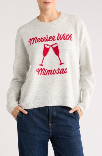 Get cozy in this slouchy pullover sweater boasting a festive pattern that's perfect for the holiday season.