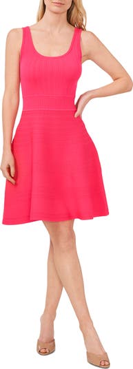 Multidirectional ribbing adds gorgeous texture to this sleeveless sweater-dress knit in a chic fit-and-flare silhouette.