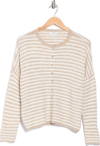Casual outings call for the classic comfort of a striped cardigan that looks great on its own and can be layered under or over your favorite chilly-day looks.