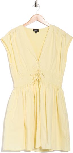 This V‑neck dress features a smocked waist and multi‑tie details for a flattering, playful silhouette.