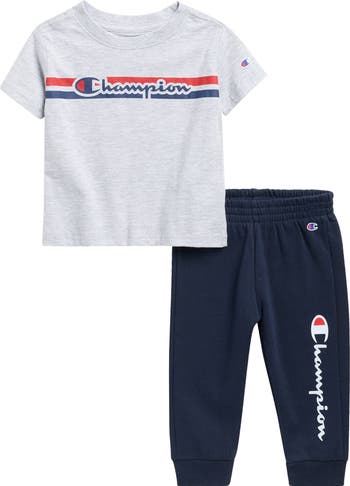 Keep your little one comfy in this two-piece set including a sporty logo-printed T-shirt and coordinating sweatpants.