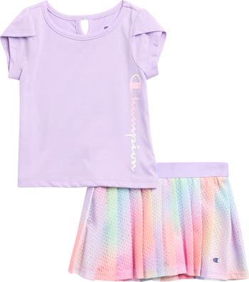 Your little one's sporty style will bloom in this logo-stamped T-shirt and pleated mesh skort set.
