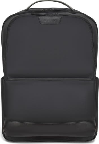 - Interior has zip pockets, RFID pocket, mesh pocket, key clasp, laptop pocket, tablet pocket
