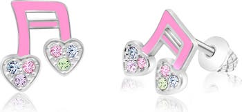 They can add a playful flourish to their look with these crystal-embellished enamelled earrings in a musical note design.