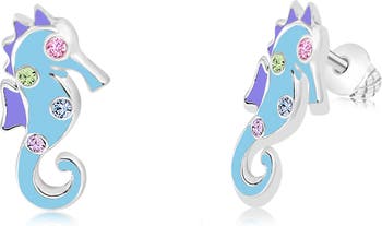 Colorful crystals add extra sparkle to these adorable seahorse earrings that are sure to delight any kid.