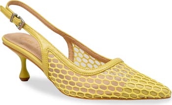 Airy crochet and mesh brings breathable comfort to a chic slingback pump lifted by a demure kitten heel.