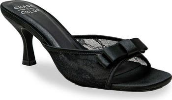 Perfectly poised and fit for any occasion, this classic open-toe sandal features sheer lace panels and a satin bow to further refine your look.